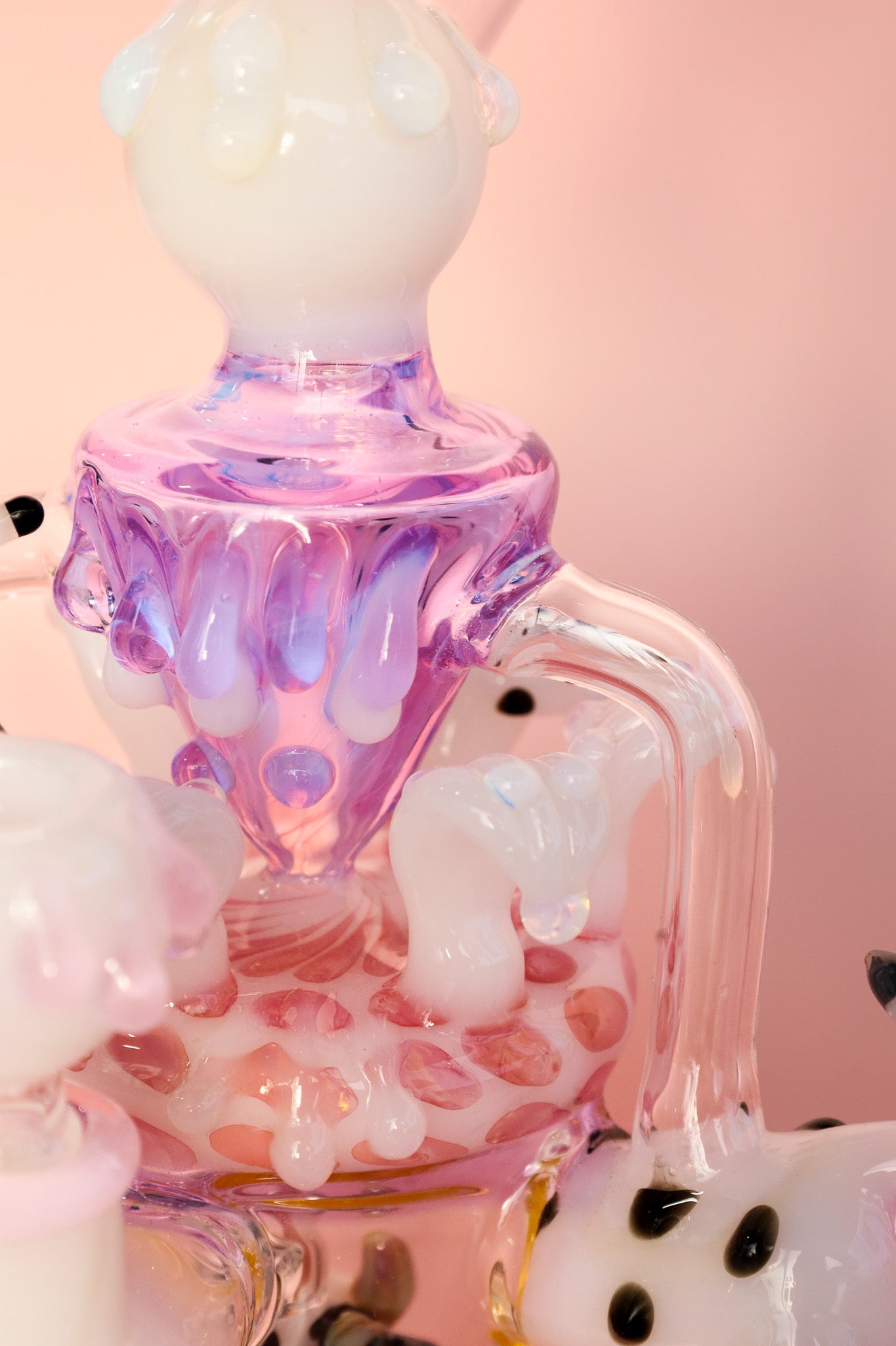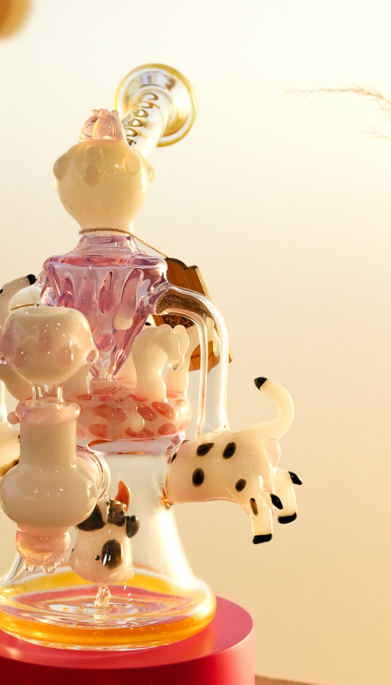 Meet the Cheech Got Milk Bong — a whimsical, udderly adorable 10" glass piece that turns every sesh into a sweet treat. Crafted from durable borosilicate glass, this pastel dream features dripping “milk” accents, playful cow details, and a splash of purple and pink that makes it truly one-of-a-kind.