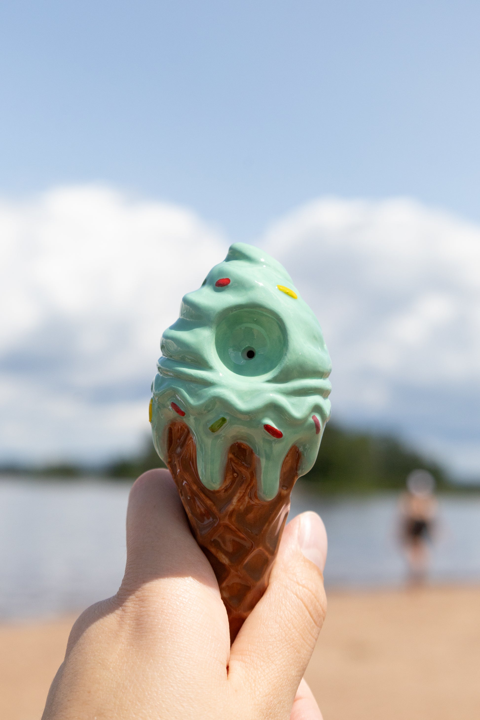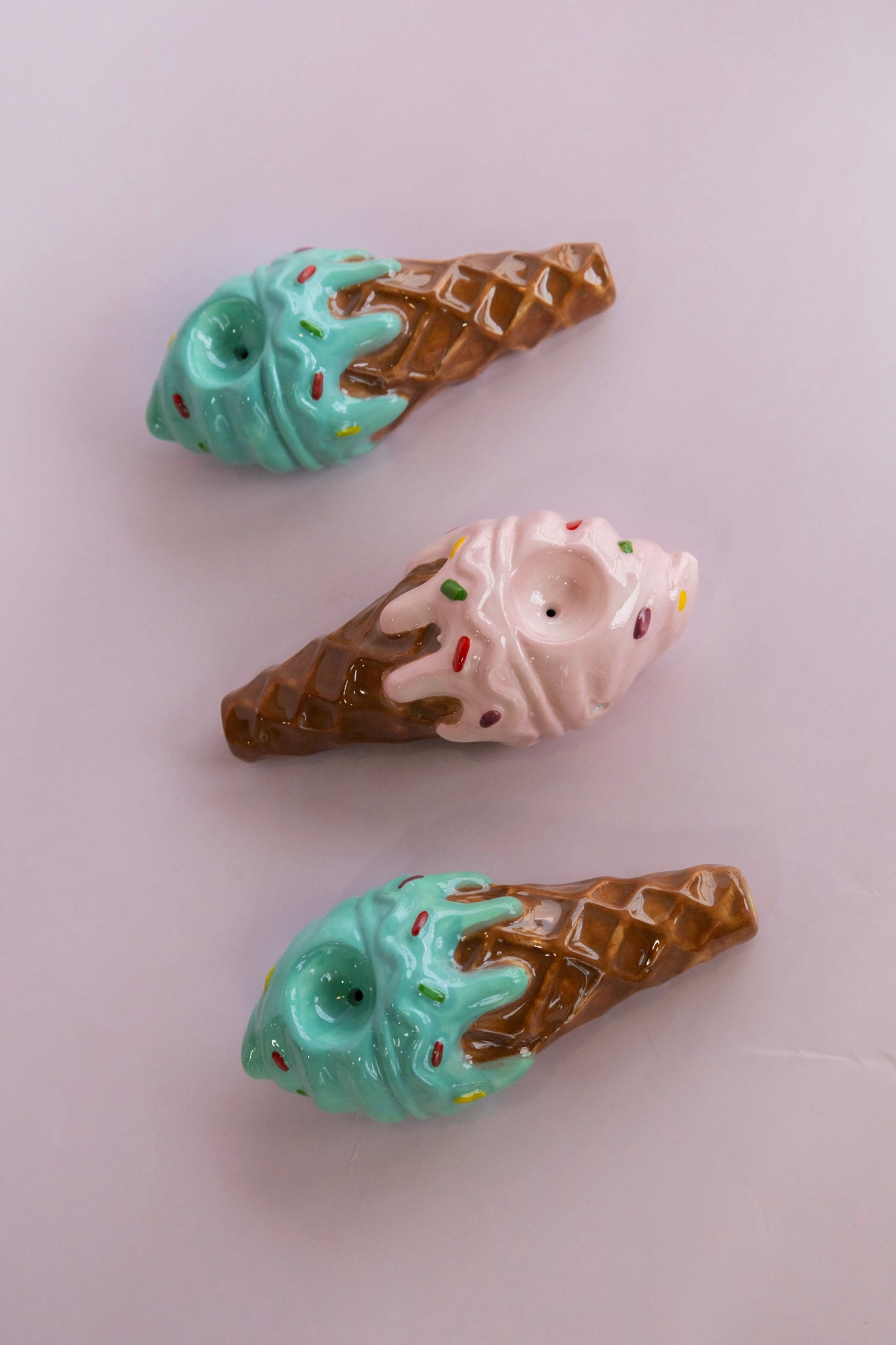 Ice Cream Cone Ceramic Pipe 3.5" - Wacky Bowlz