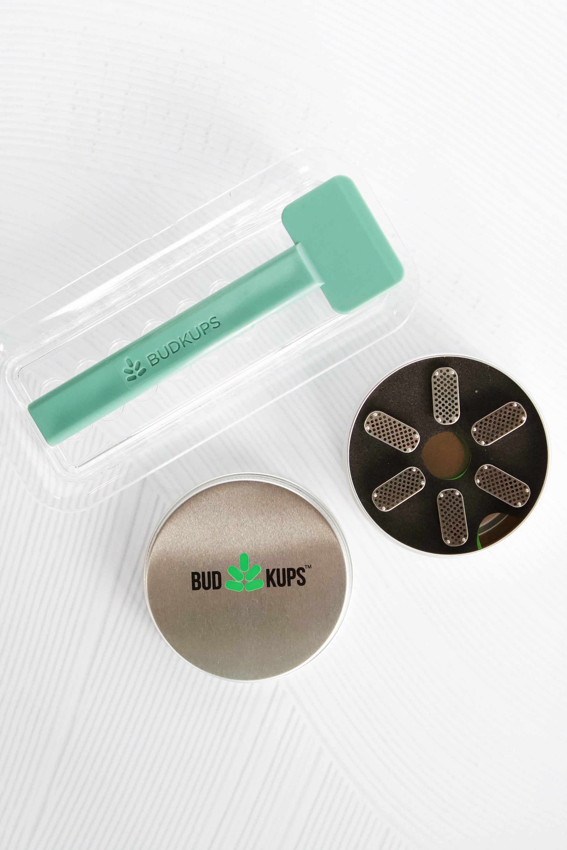 Contains: 6 BudKups 3.0, the Packing System, a round Bud Case, and 2 BudKup removal tools.