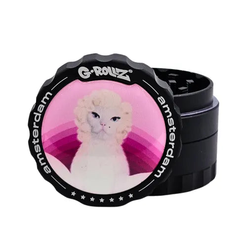The G-Rollz Pets Rock 'Diamonds' 53mm 4pc Metal Grinder is designed for efficient herb processing. This durable metal grinder features razor-sharp teeth for smooth grinding and includes a pollen catcher and storage compartment. Each grinder comes in a convenient 6-piece display. A standout feature is the magnetic sticker on the top lid, allowing users to customize their grinder with designs from our website.