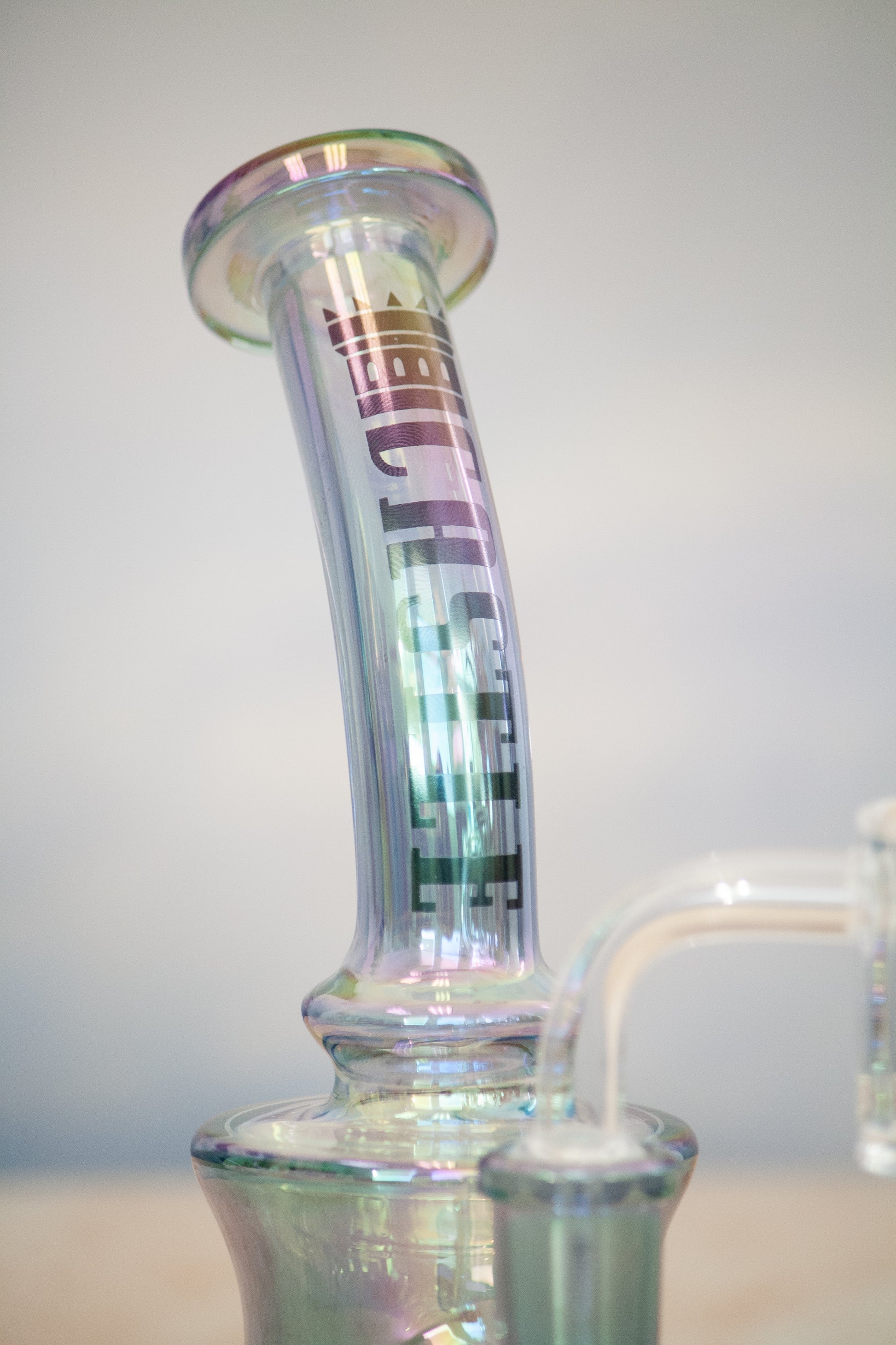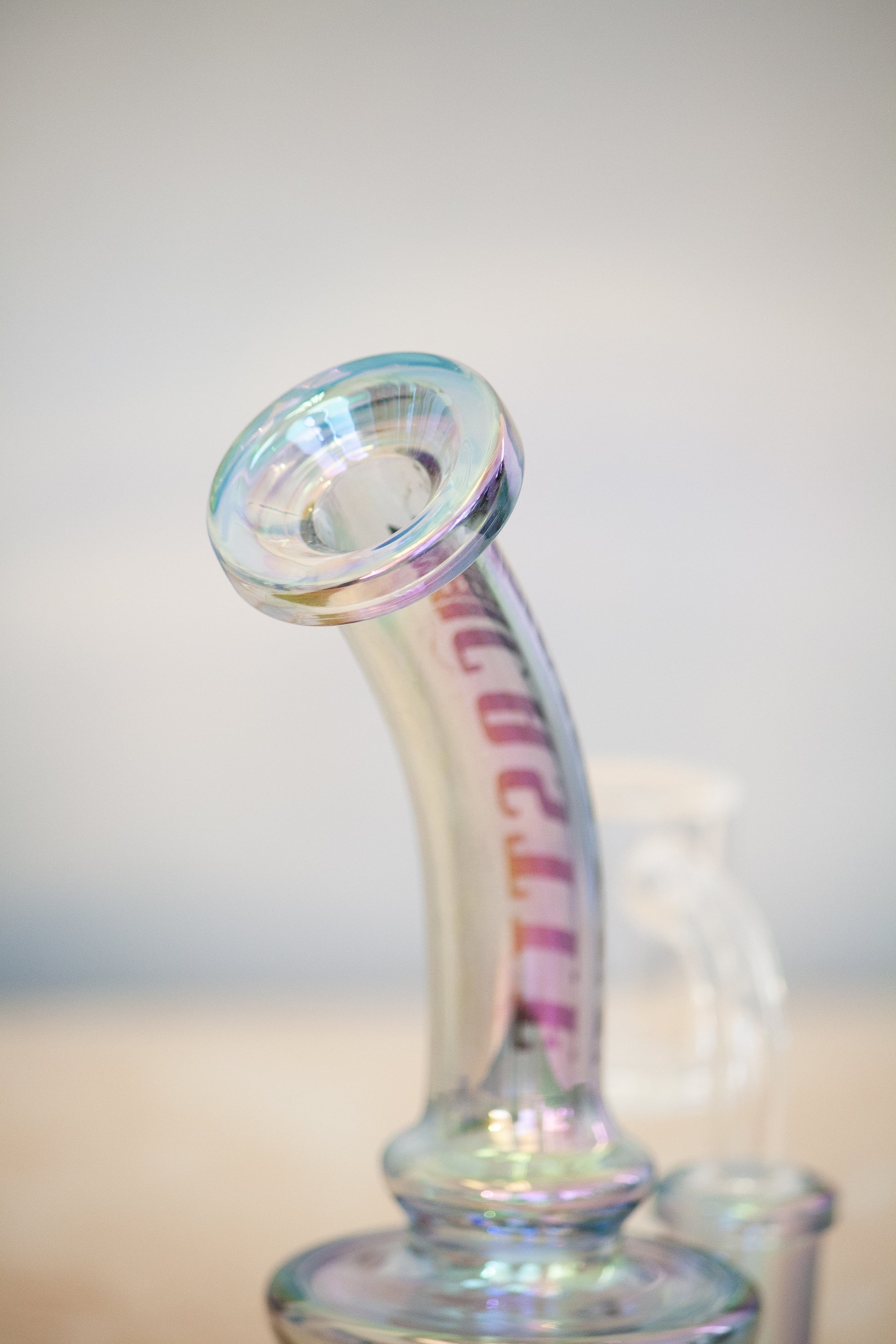 Looking for a dab rig that's both functional and visually stunning? Look no further than our Mini Electroplated Dab Rig! This piece boasts a sleek design with eye-catching color accents and splash-guard ridges.