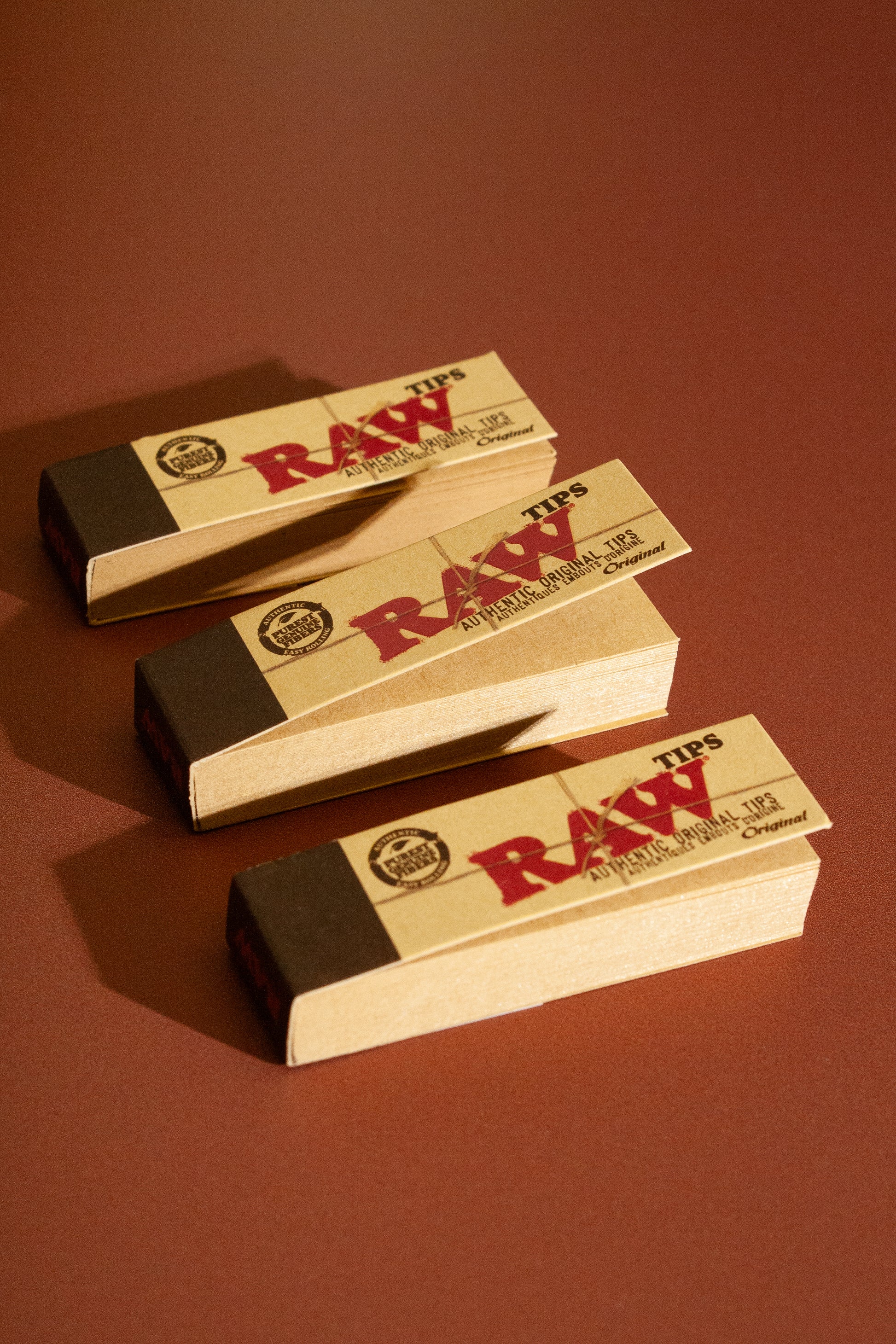 RAW Original Tips are meticulously crafted from natural long fibers using an original type Fourdrinier paper machine – we’ve spared no expense. RAW Original Tips roll up smooth and have enough structural integrity to maintain their shape and rigidity even when wet. We carefully lay out and cut the paper properly with the grain so they roll smoothly (instead of squaring as many other tips from inferior companies do).