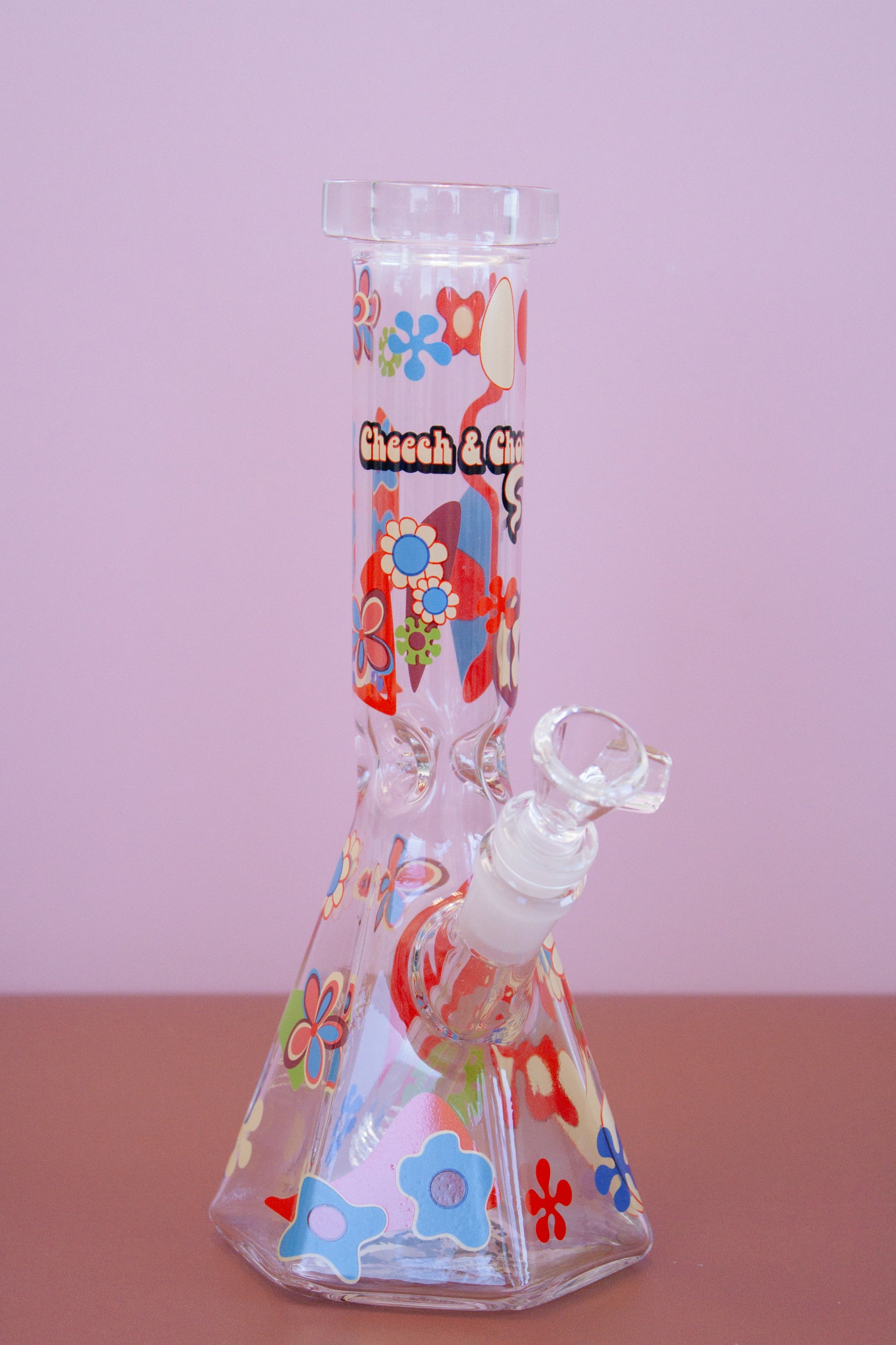 Hey man, are you ready to get groovy with your ganja? The Power to the Flower Hex Beaker Base Water Pipe features a classic '70s Cheech & Chong® Glass decal and a far-out hex-shaped design. Stay funky fresh and choose between crystal Clear or hazy Smoke for your next sesh.