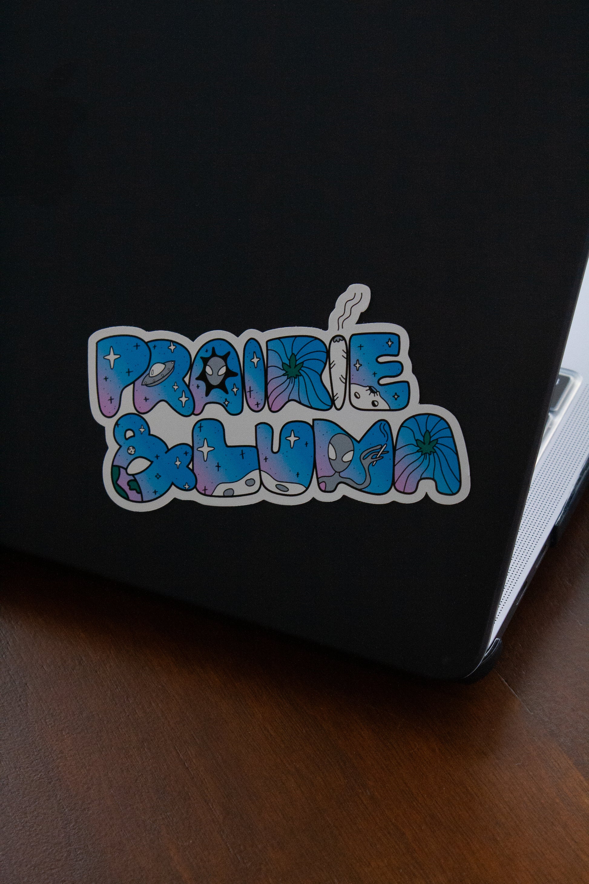 Rep Prairie and Luna with our latest outer-planetary inspired brand stickers, designed by the one and only Nikki, creator of Rompotodo.