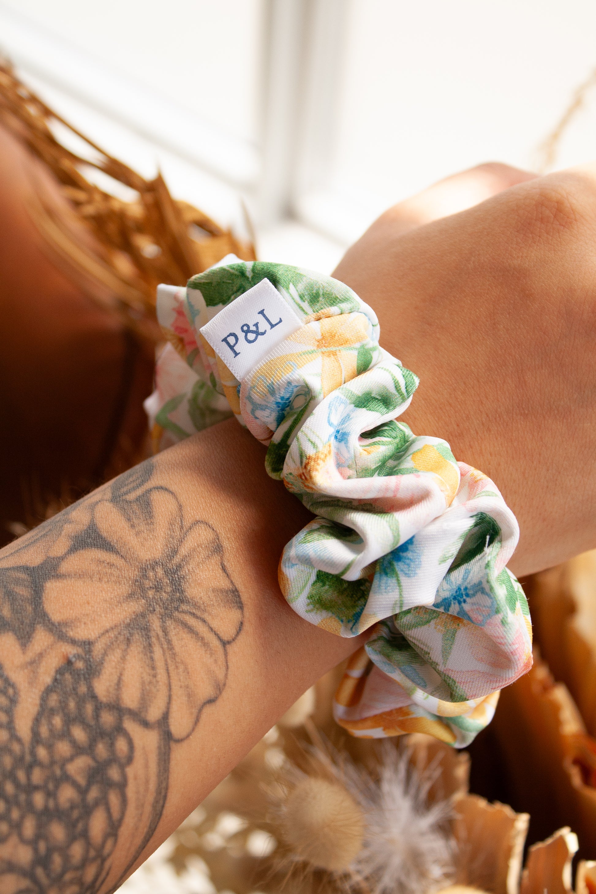 These gorgeous scrunchies were custom designed for P&L by Nuthatch Artistry, a local military spouse and artist. Her hand-painted, one-of-a-kind botanical cannabis watercolour design is printed on a soft, stretchy sports lycra for a perfectly subtle accessory.