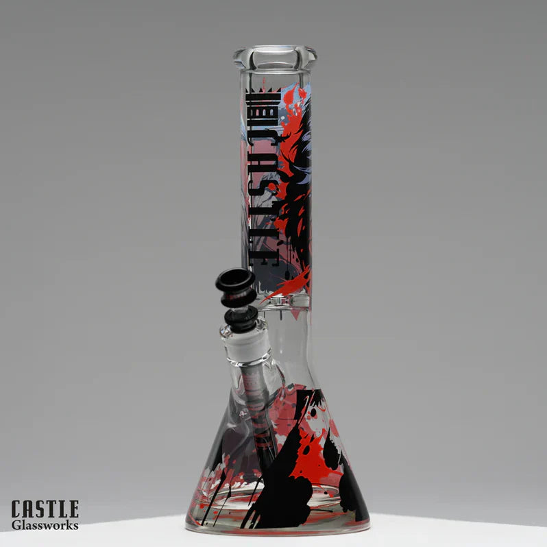 Equipped with a matching colored glass bowl and a downstem, this bong delivers both convenience and performance. The intricate raven imagery, symbolic of transformation and wisdom, brings an artistic touch to your sessions, while the durable beaker base ensures a smooth and efficient smoking experience. Ideal for those who appreciate the intersection of functionality and craftsmanship, the Raven Castle Bong is a powerful statement piece for modern enthusiasts.