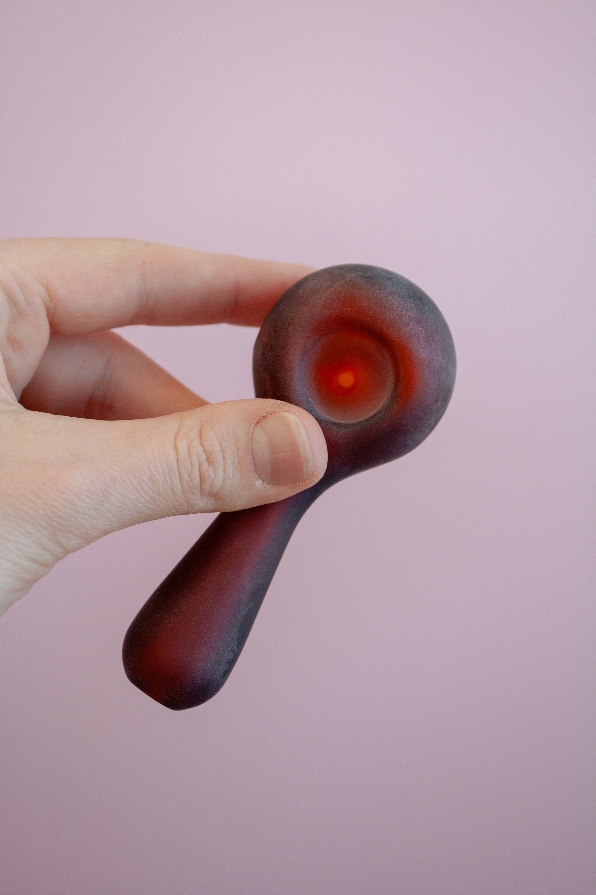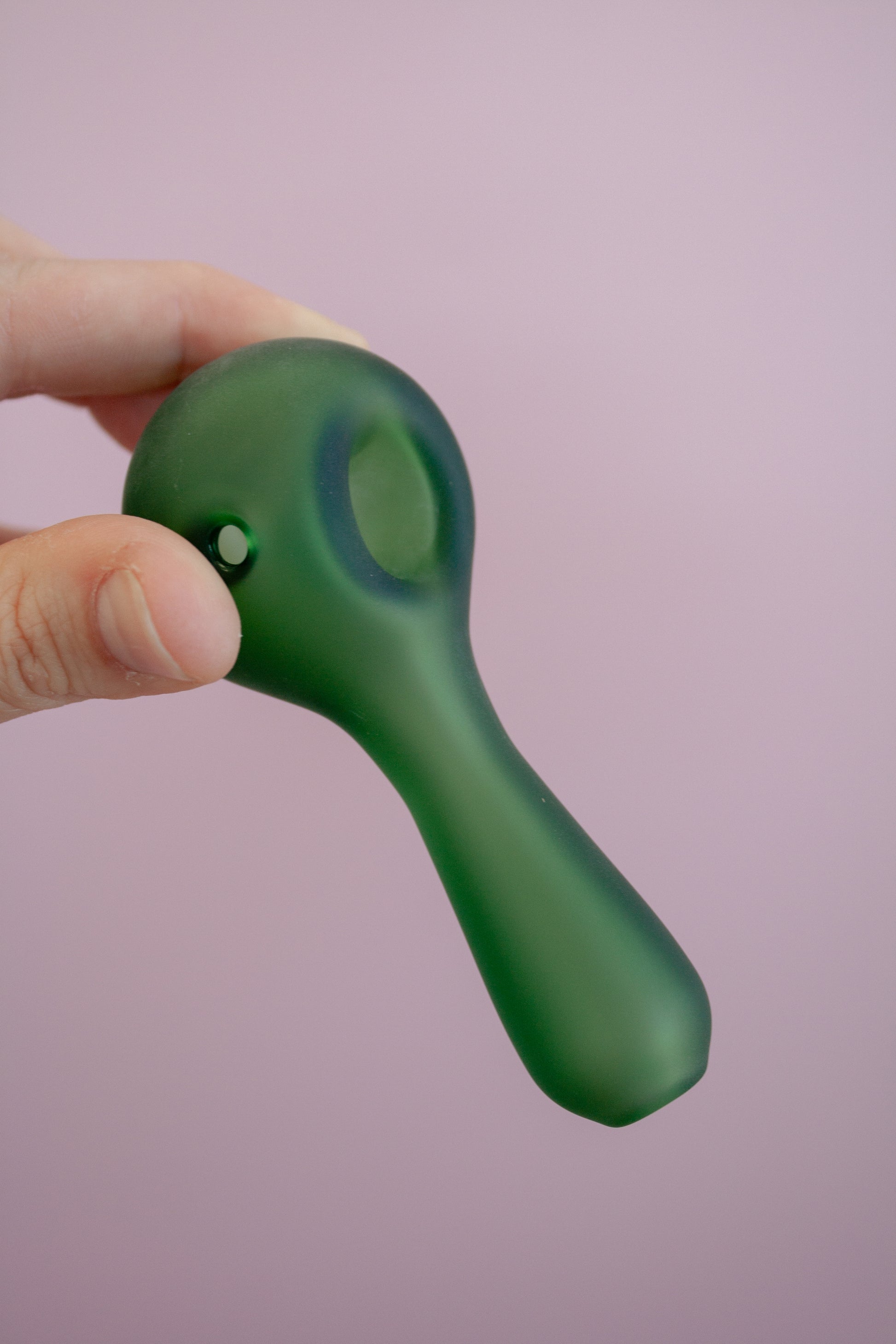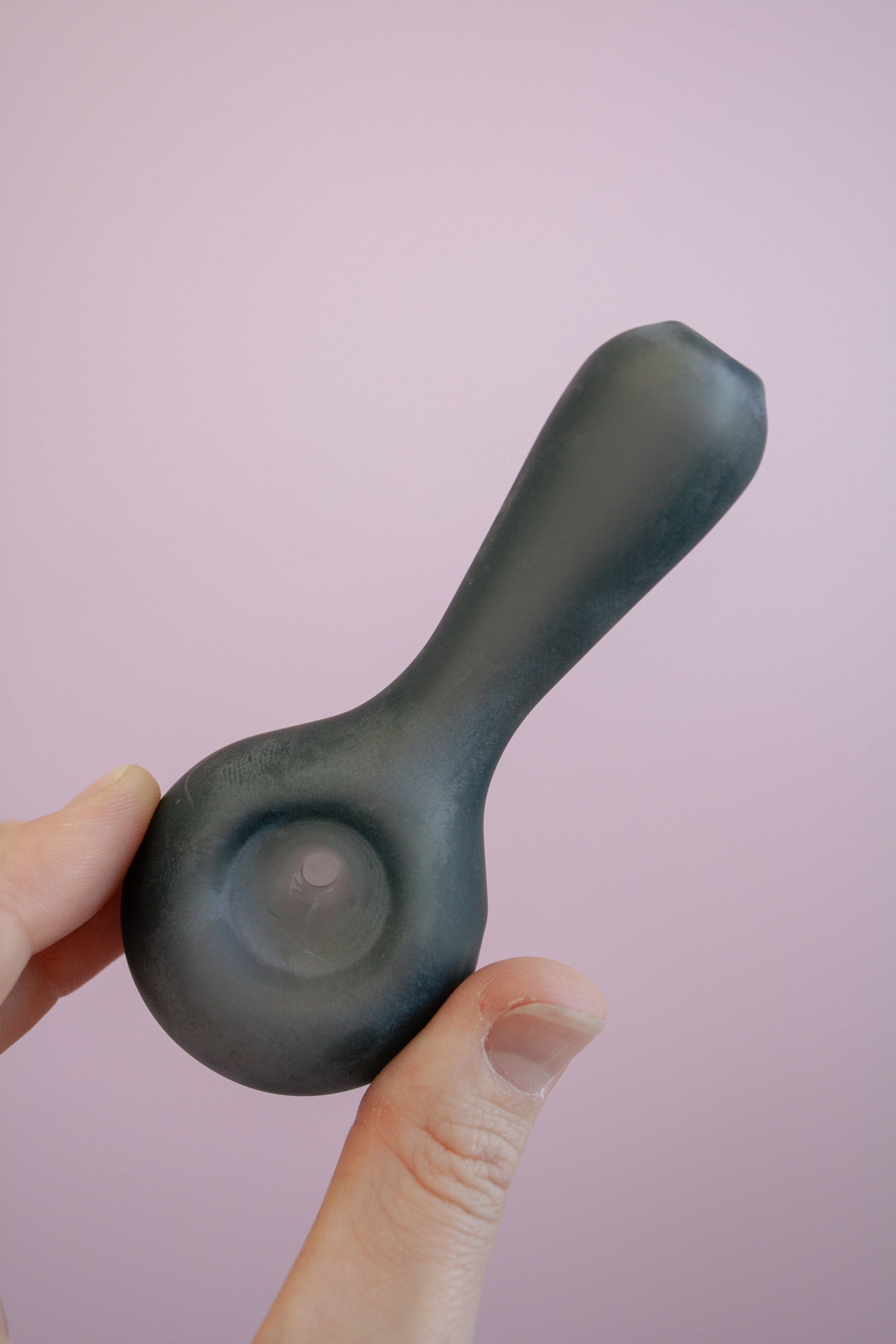 A Borosilicate glass spoon pipe with a matte sandblasted exterior. Comes in four colours.
