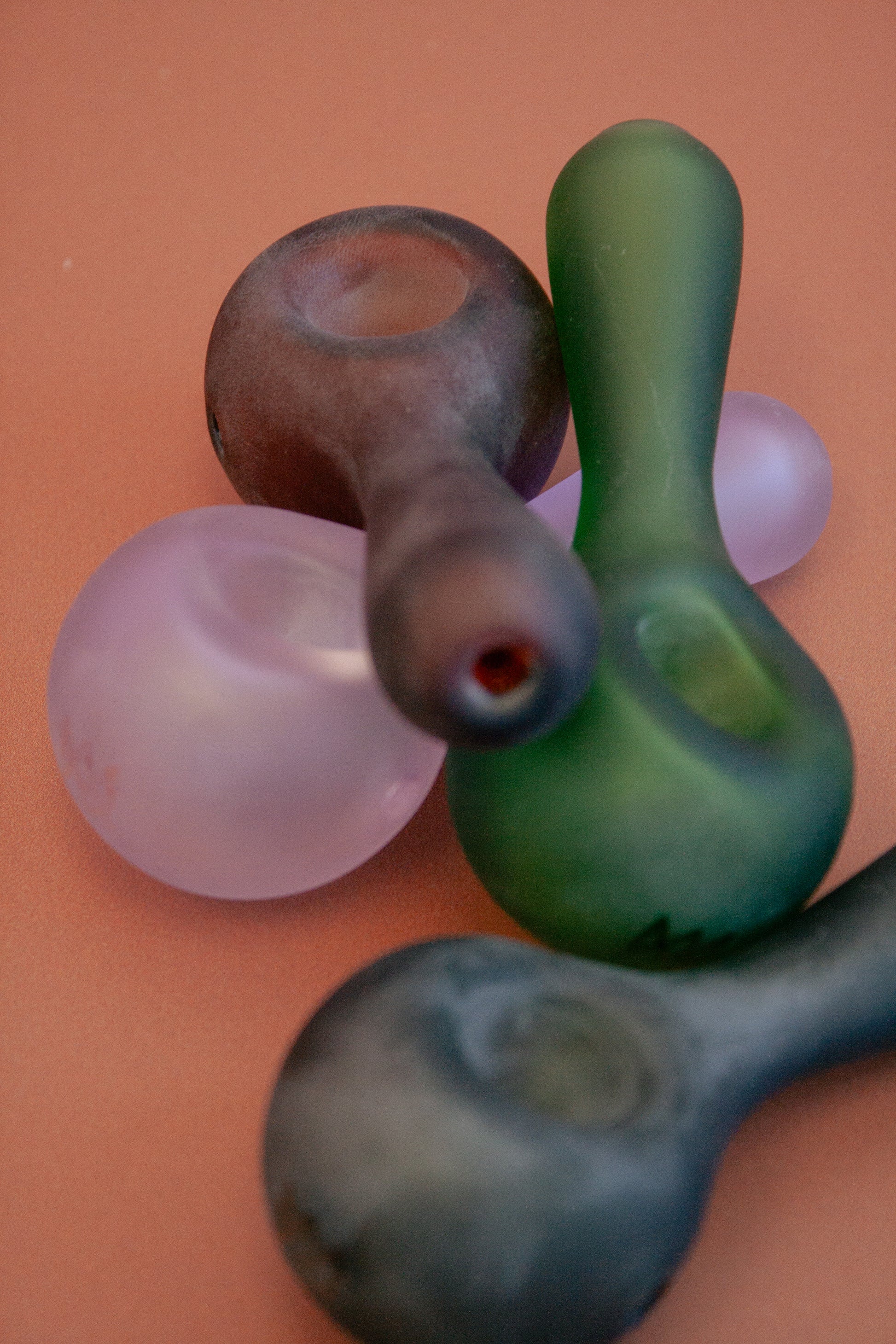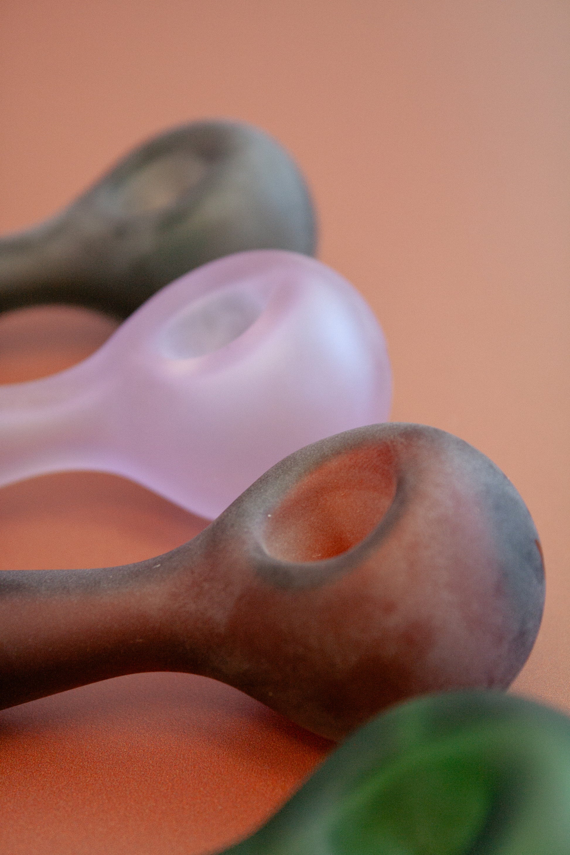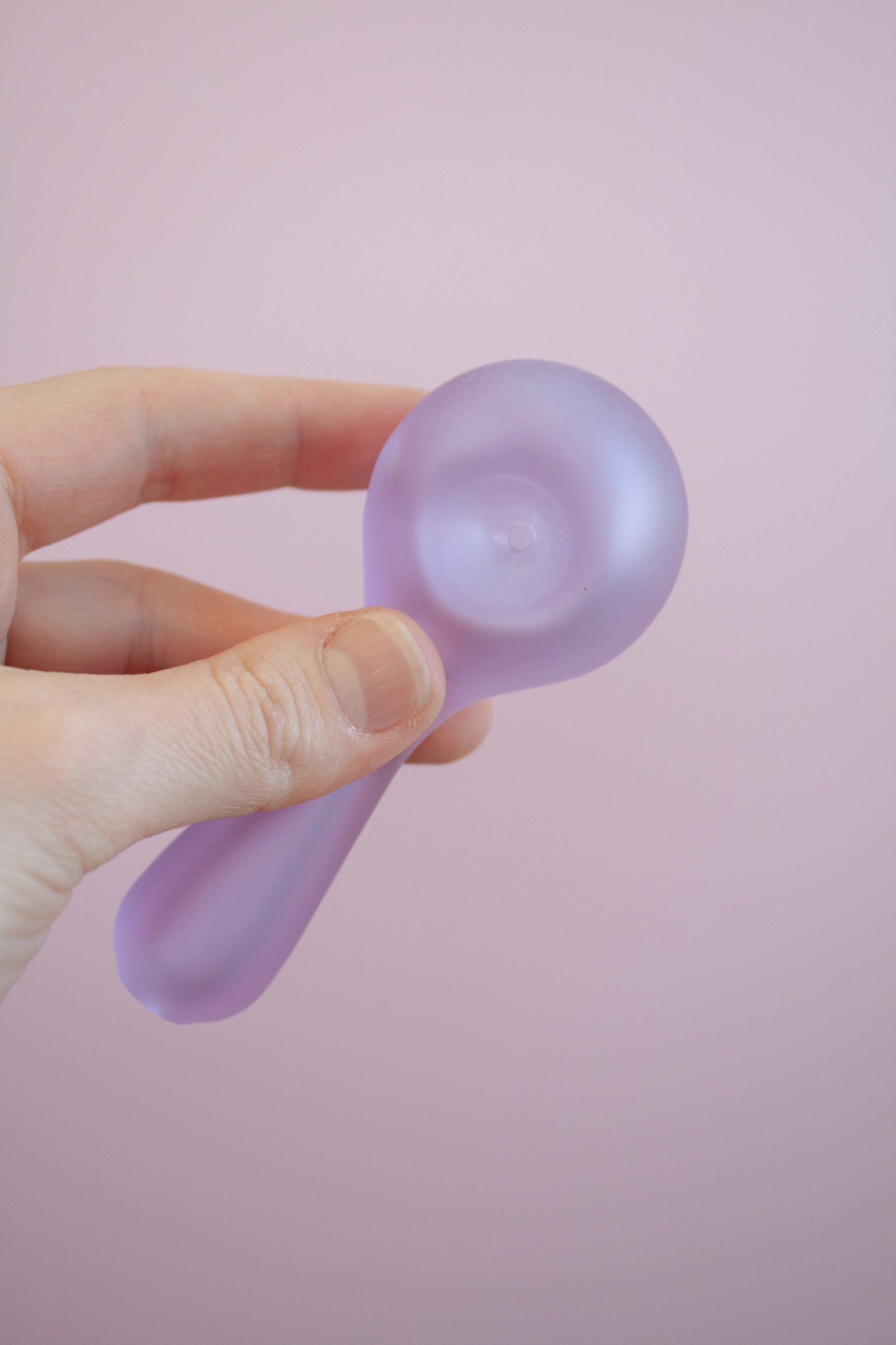 A Borosilicate glass spoon pipe with a matte sandblasted exterior. Comes in four colours.