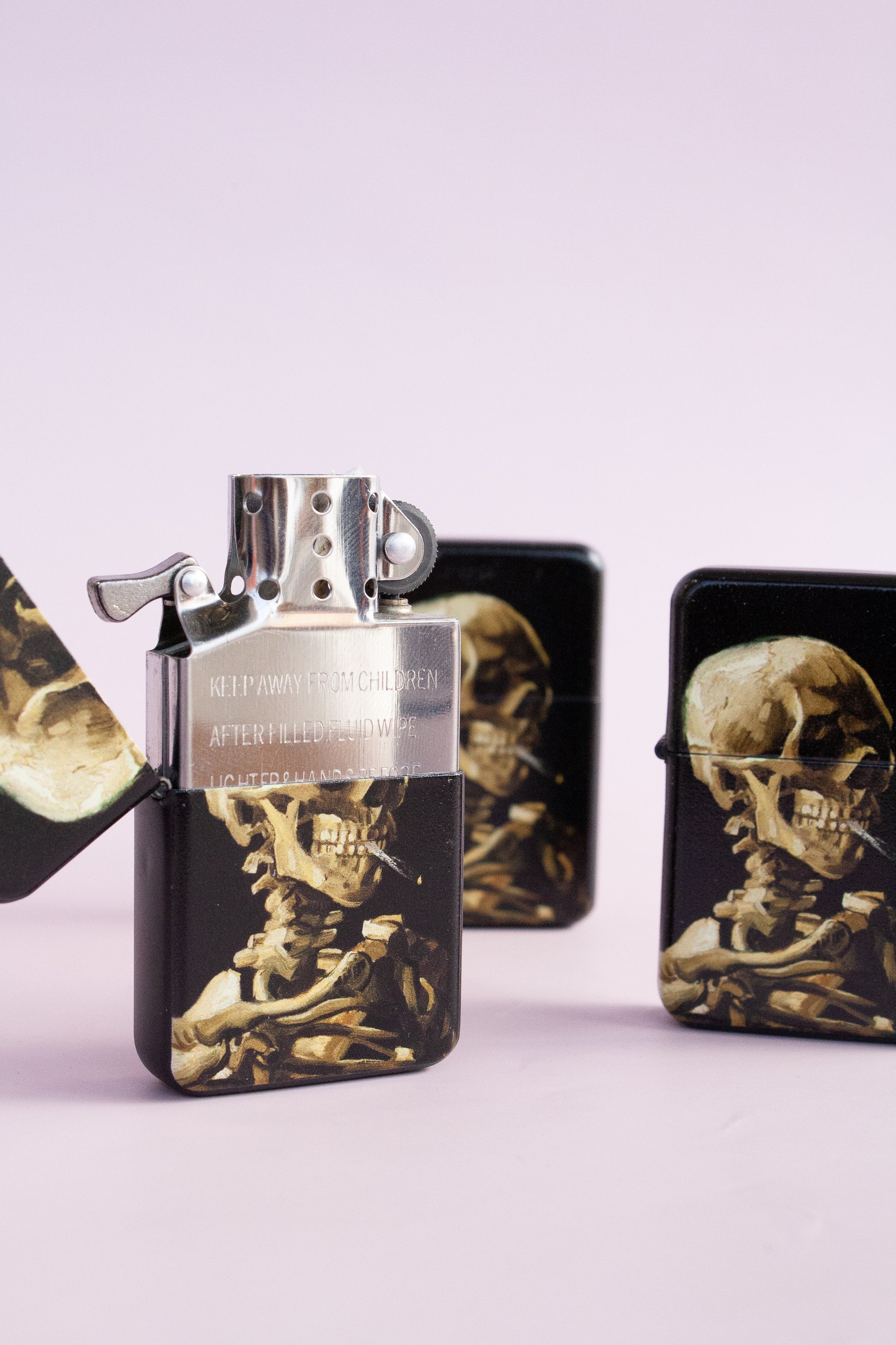 Van Goghs Smoking Skeleton Flip Top Lighter - Flora and Nirvana